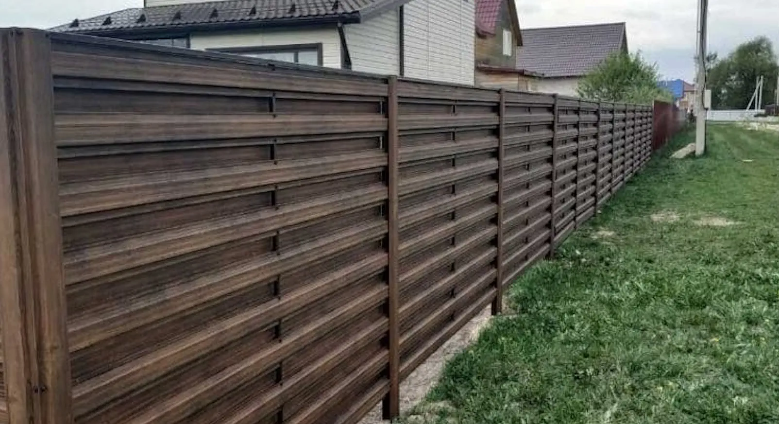 Самый распространённый тип заборов, который используется сейчас, это металлический евроштакетник. Его основные преимущества оптимальное соотношение цена и качество, долговечность, хорошая проветриваемость участка, эстетичность и монтируется просто и легко.